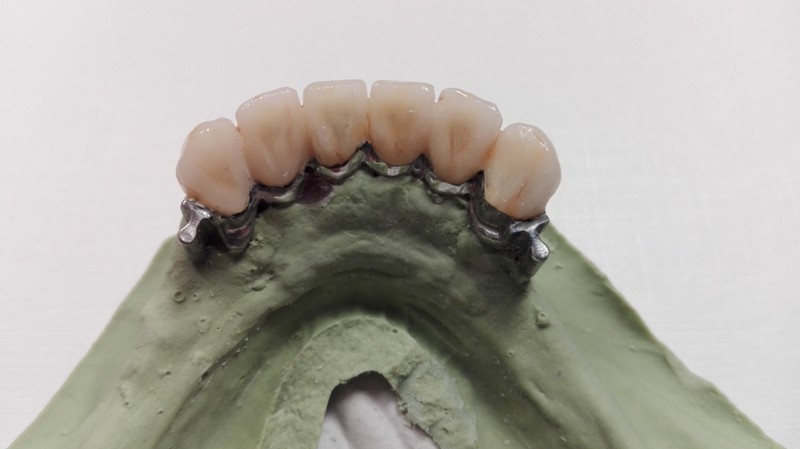 retención de la parte removible sobre la parte fija de la prótesis mixta.